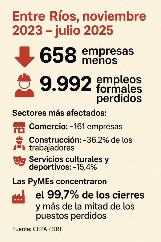 Entre Ríos perdió 658 empresas y casi 10.000 empleos formales entre noviembre de 2023 y julio de 2025