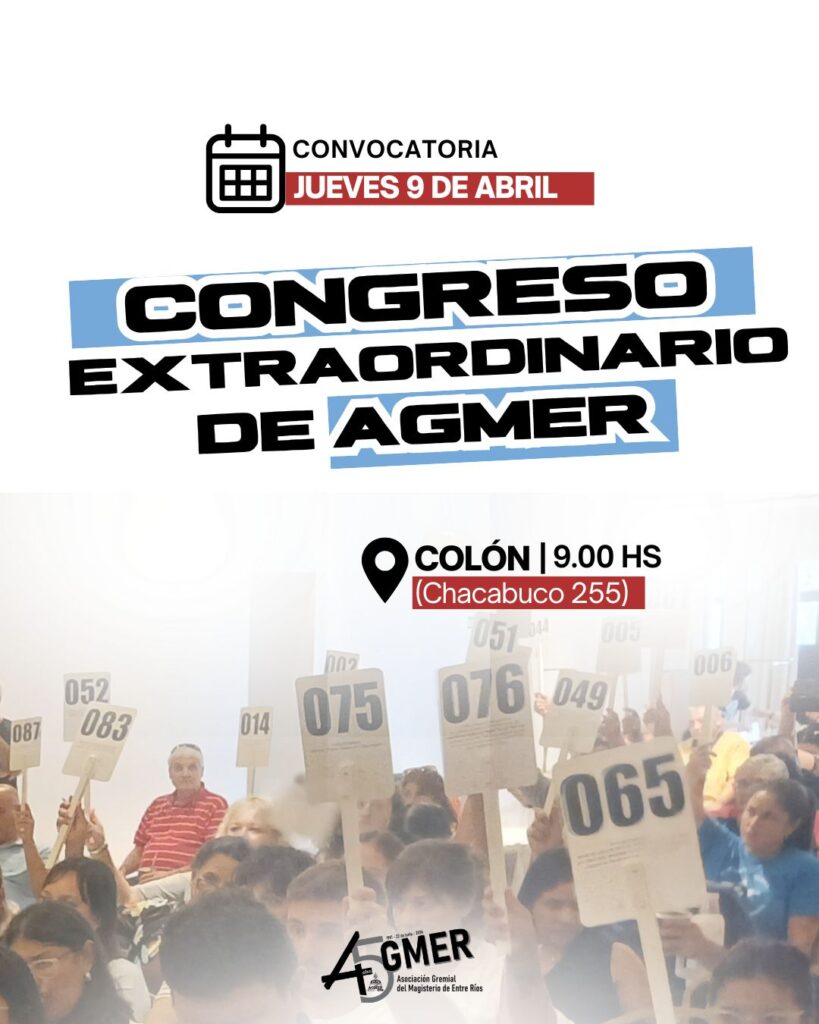 AGMER convocó al Congreso Extraordinario para este jueves 9 de abril